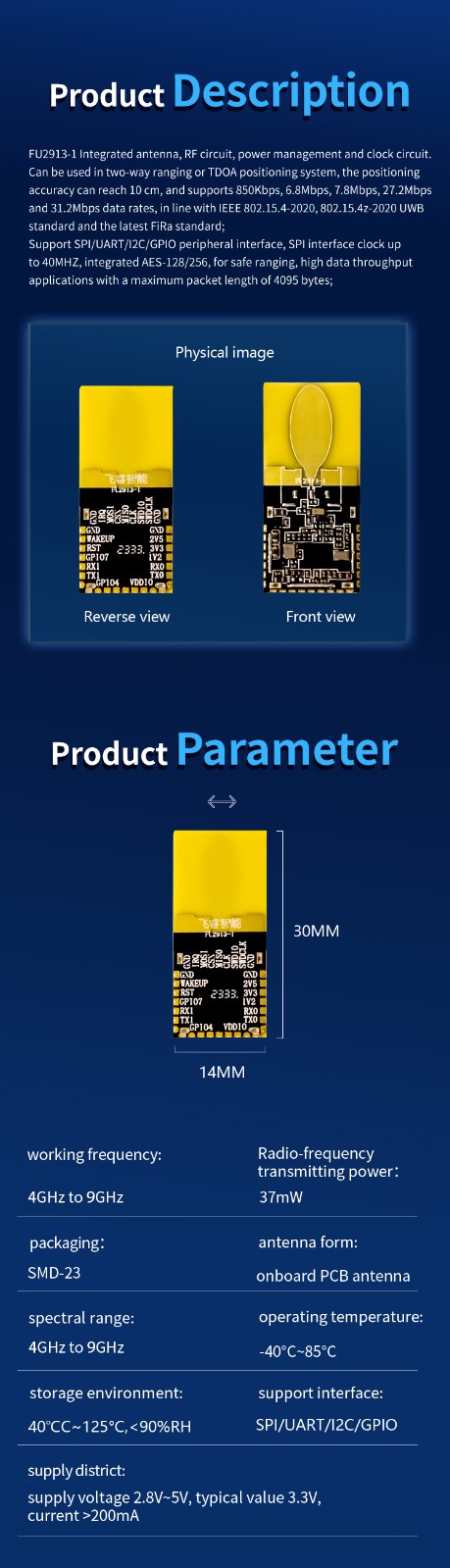 飛睿智能UWB標簽模塊,超寬帶高精度測距定位,防丟解鎖跟隨數傳應用