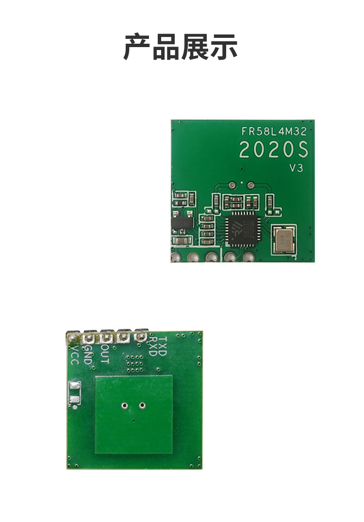 FR58L4M32-2020S(A)是飛睿智能推出的高性能 5.8G 雷達(dá)傳感器,雷達(dá)模塊利用多普勒原理,通過天線發(fā)射高頻電磁波并接收初期反射波,以此判斷覆蓋范圍內(nèi)物體的移動(dòng),給出相應(yīng)電信號(hào)。模塊尺寸 20*20MM該芯片集成了 5.8G 微波電路、中頻放大電路以及信號(hào)處理器,集成度高且生產(chǎn)一致性好,模塊內(nèi)置 32 位 MCU和收發(fā)天線,大大提高了傳感器的感應(yīng)性能。