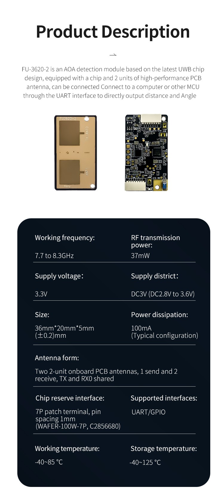 天線形式: 2單元UWB天線,支持2DAOA